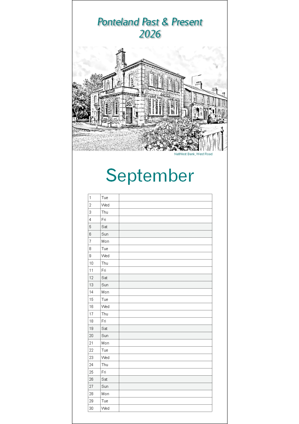 Details of your Ponteland half A3 Wall Calendar:-